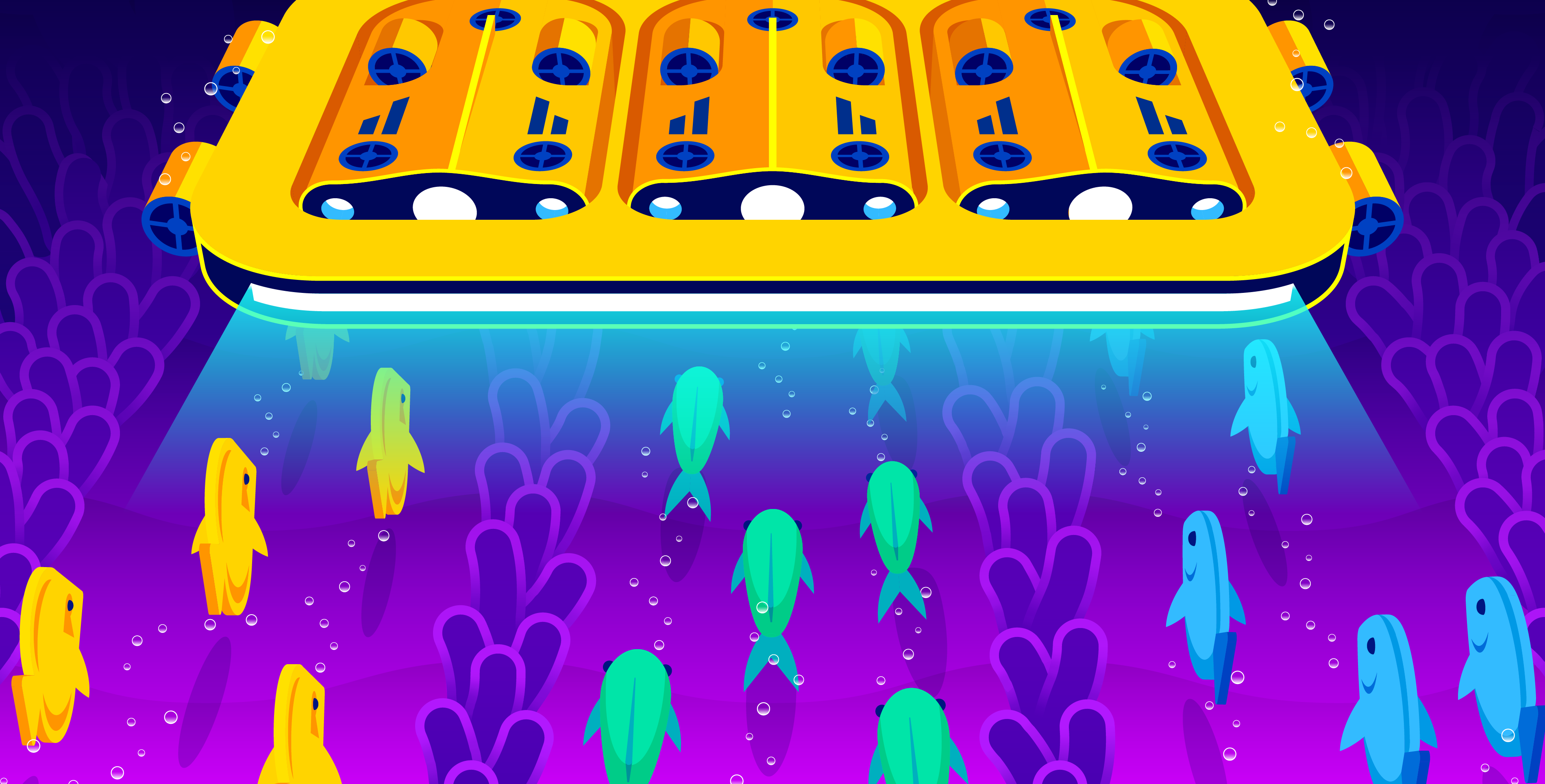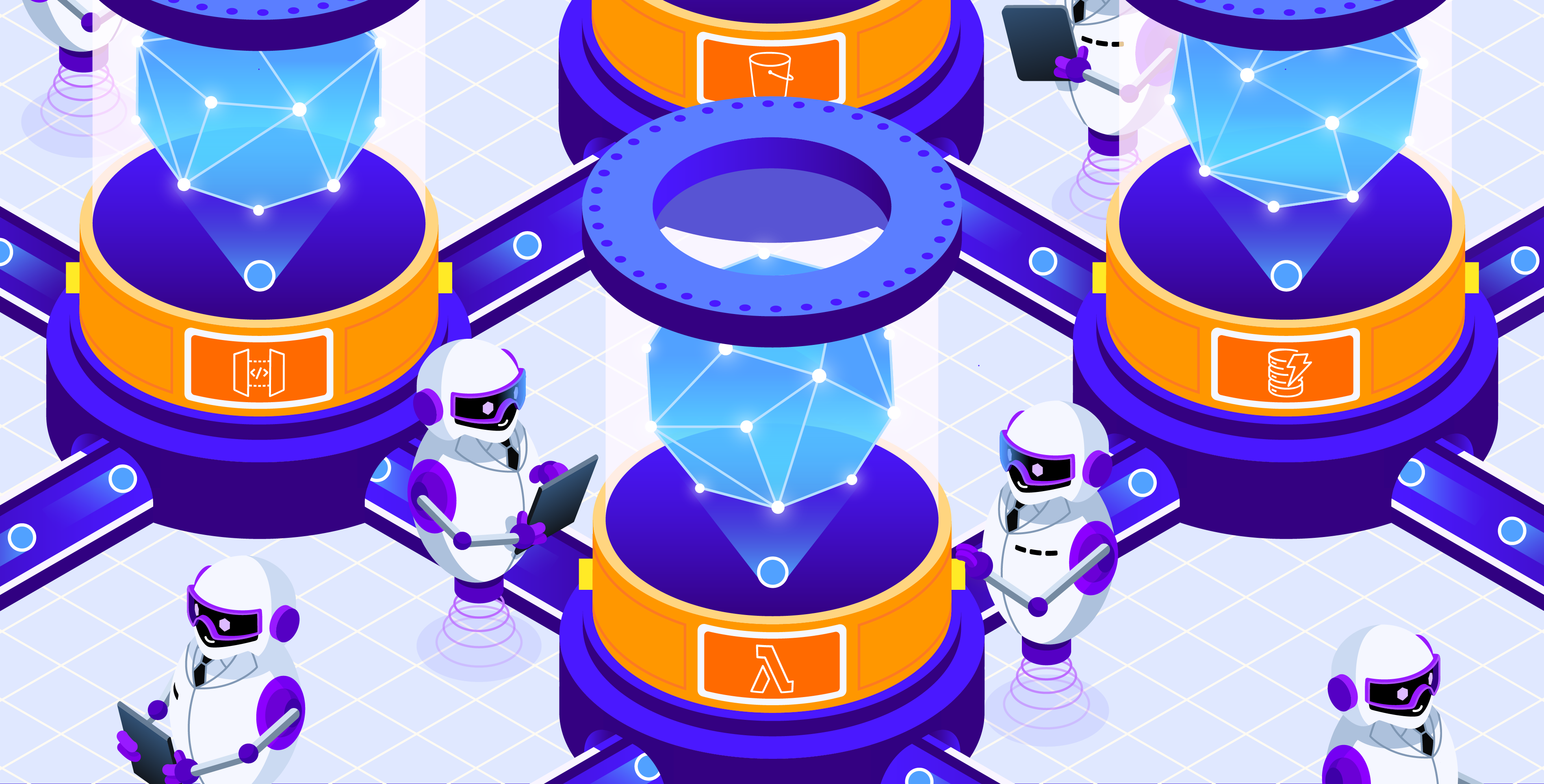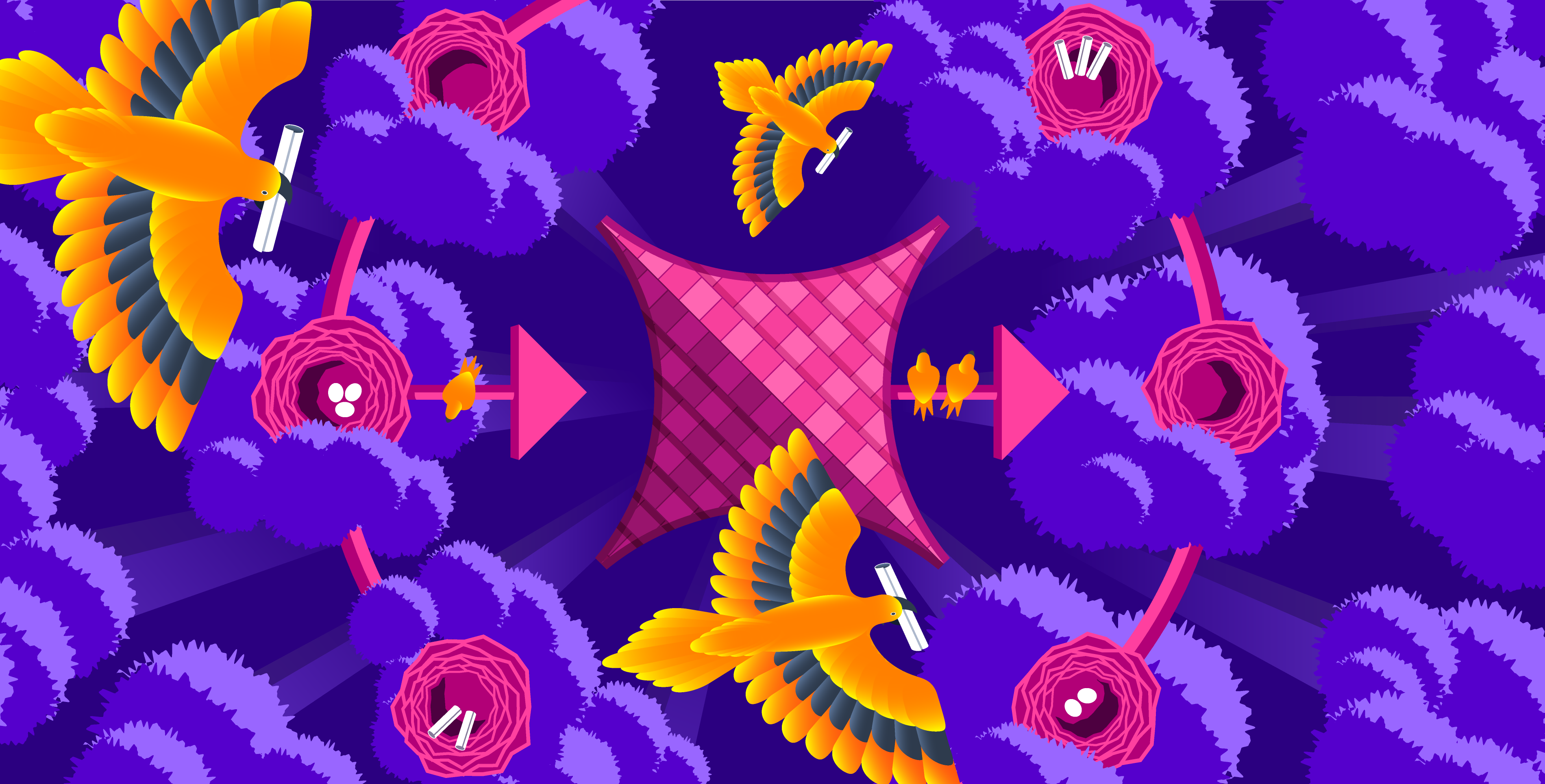 Datadog’s Illustration team works in collaboration with the Writing team to develop and create editorial illustrations for all of our blog content. Our aim is to bring meaning to complex, technical subjects while engaging our readers with bright, futuristic visuals that express the Datadog brand ethos. The style is imaginative and exciting, and often embraces real-world metaphors in order to simplify topics into accessible visual narratives.