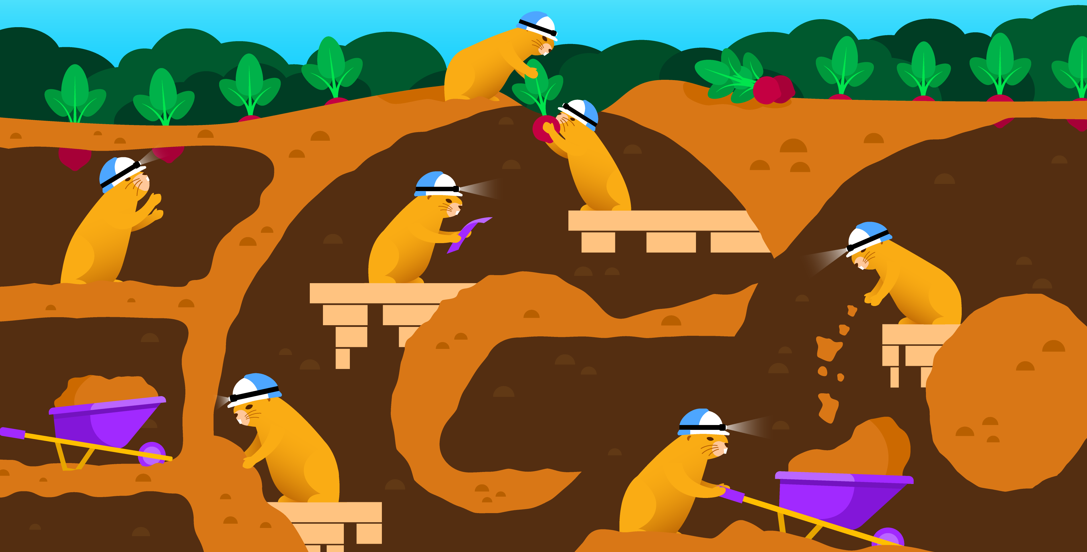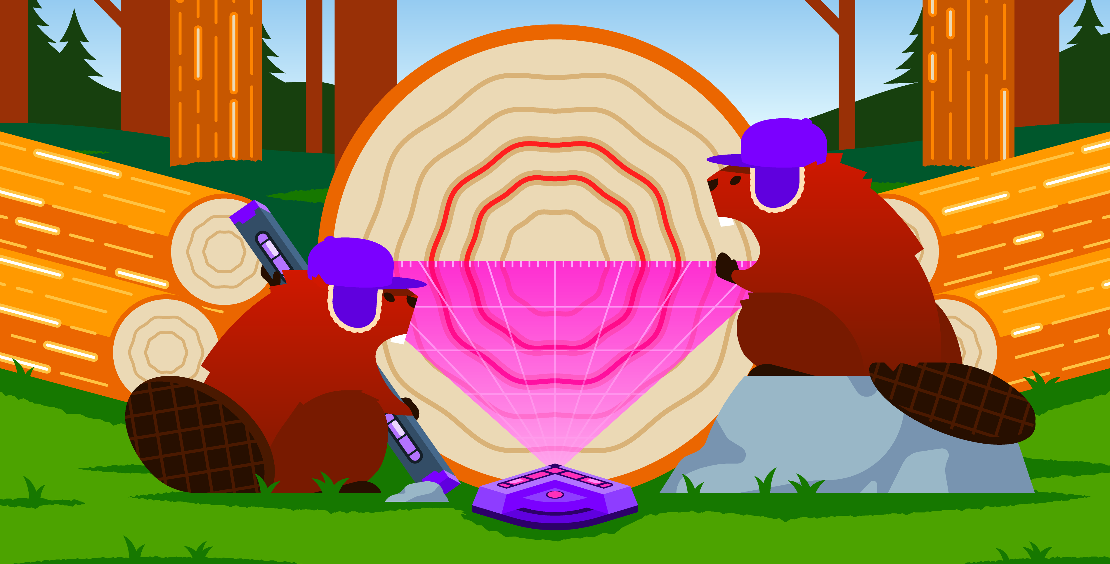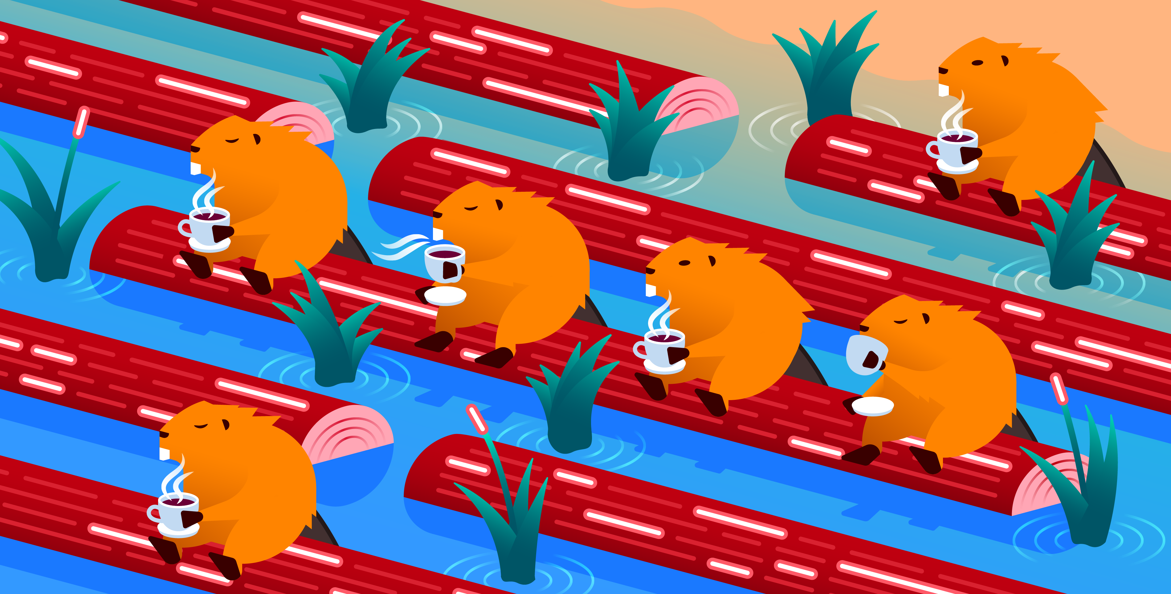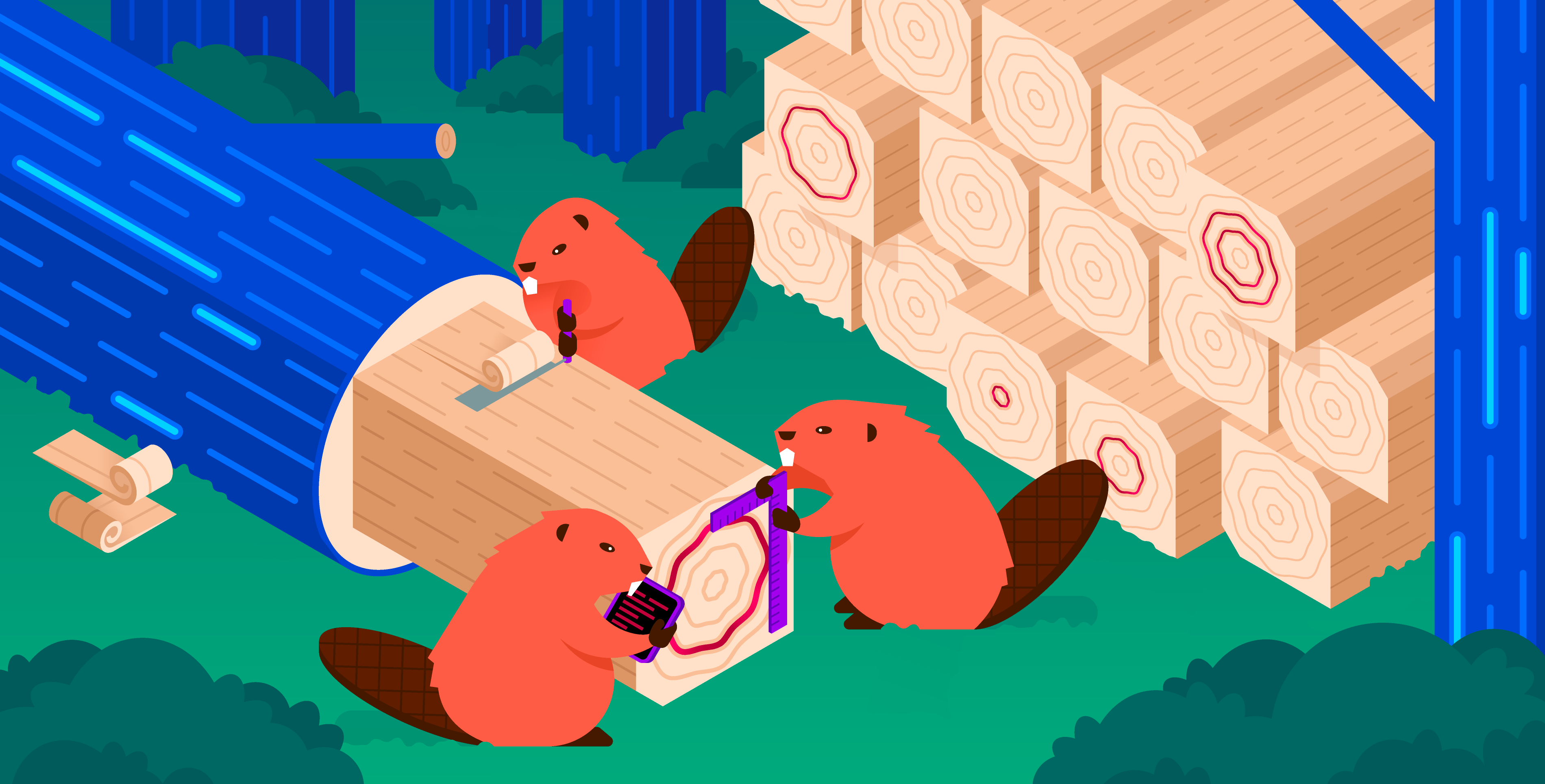 Log Management allows you to analyze log data across your stack, and is one of Datadog’s core products. Over the past several years the Illustration team has worked to develop a recurring theme using our beloved beaver character shown in various situations and scenarios relating to the editorial content.