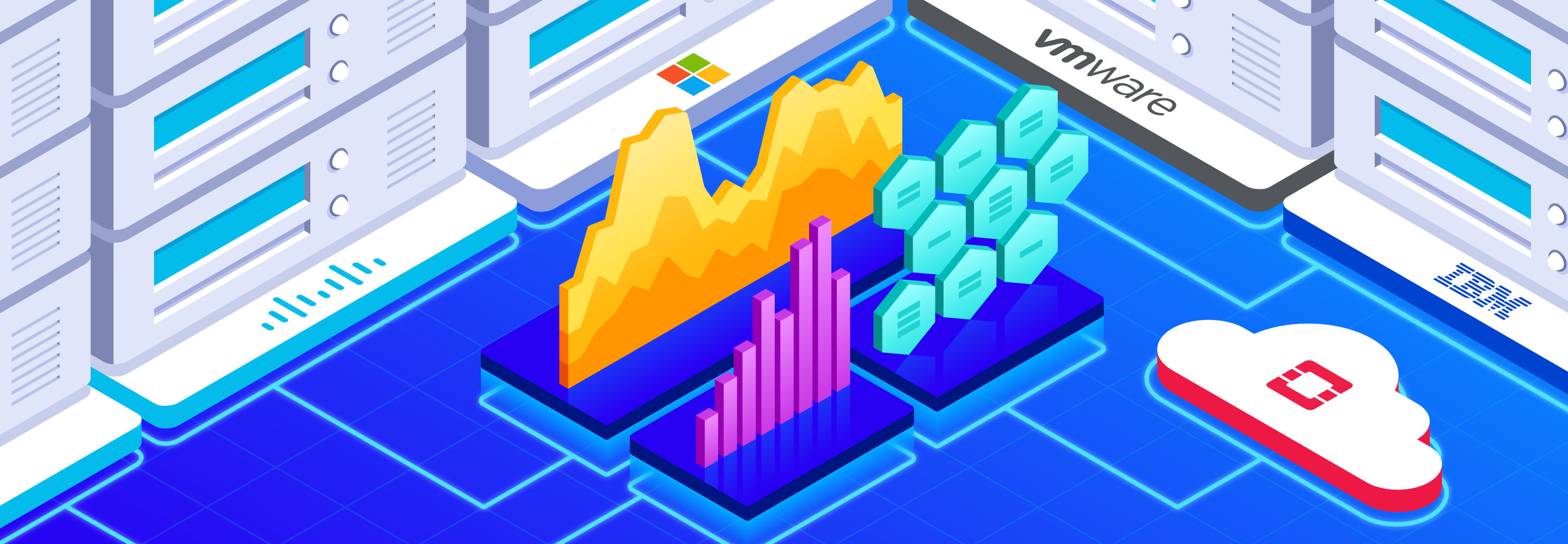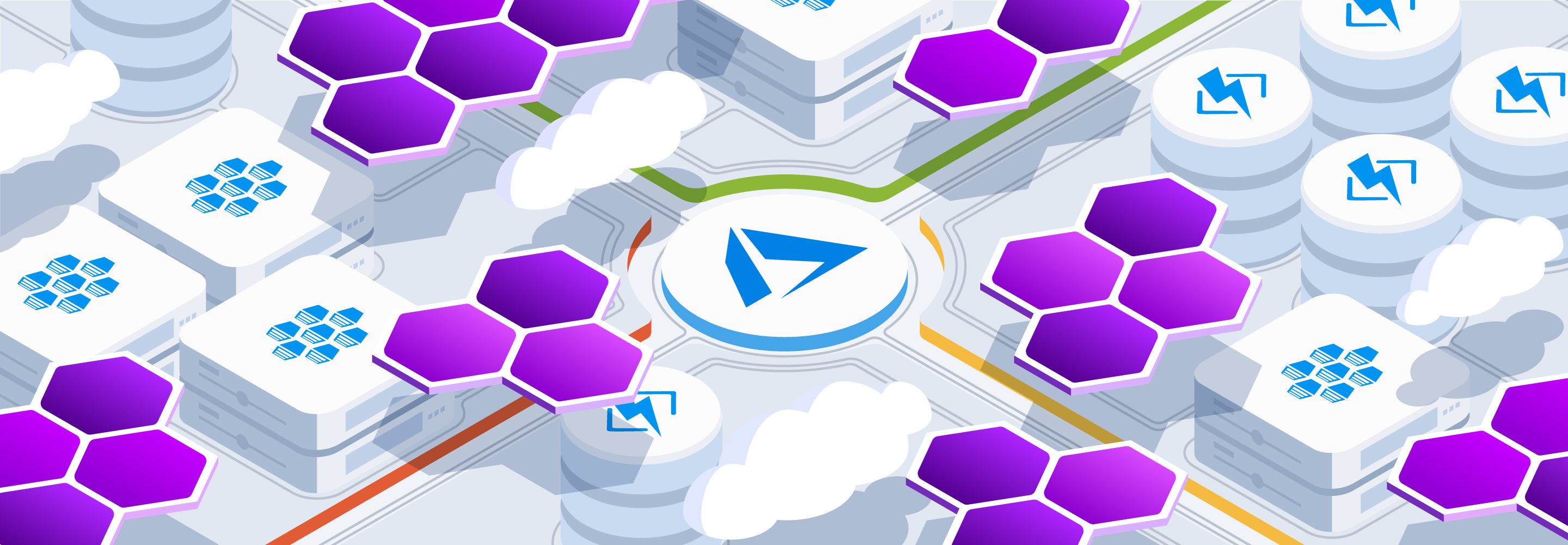 Solution Briefs are broken up into three categories: Industry, Technology, and Use-Case. Each page has its own unique hero illustration to accompany it. The style and direction for these is an isometric approach, highlighting a particular visualization of metrics within the scene.