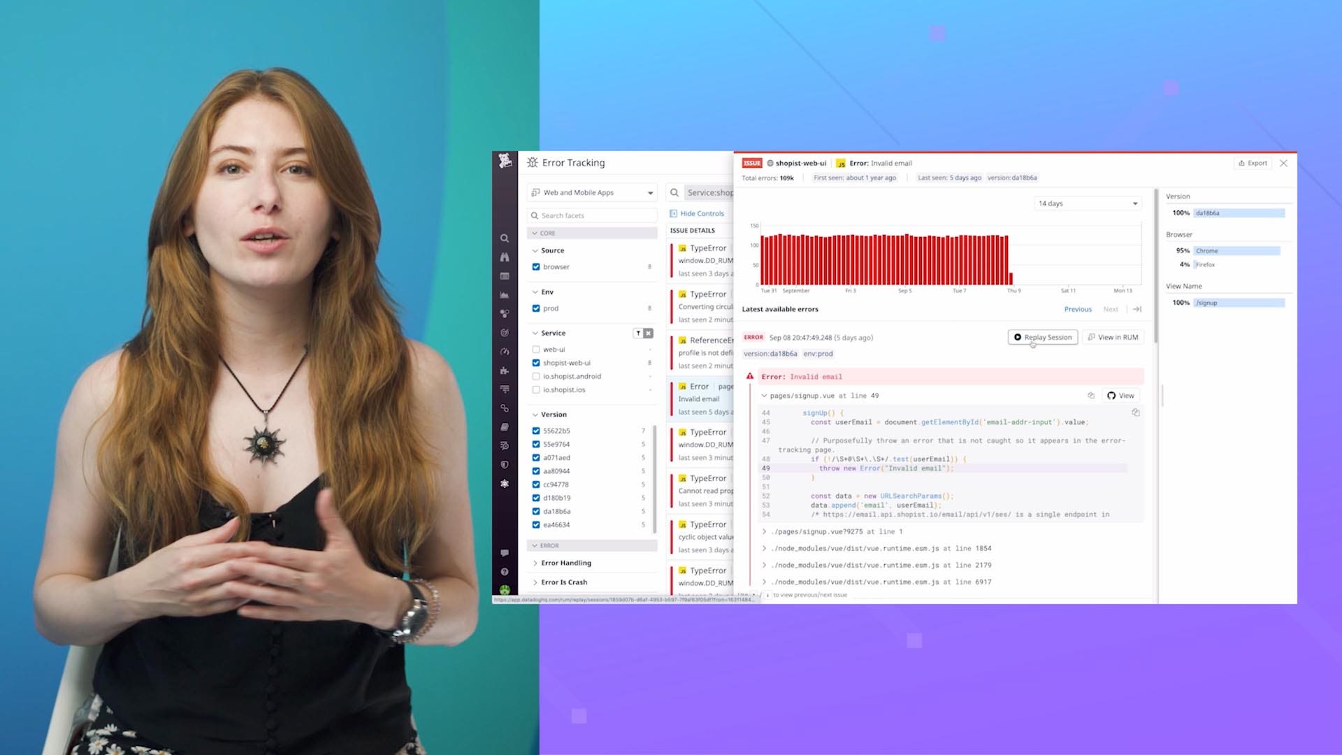 Datadog is constantly elevating the approach to cloud monitoring and security. We created a series that updates the engineering community on Datadog’s newest product features, announcements, resources, and notable events. We extruded rectangle shapes that were inspired by the modular components within Datadog’s dashboard. Both colors and the dynamic compositions suggest a friendly and energetic tone that applies liveliness to the show. The show is produced entirely in-house, with filming happening both in-person and virtually. Since launch, we’ve produced more than a dozen episodes, with the show becoming a crowd-favorite among engineers both within the company and for the wider community.